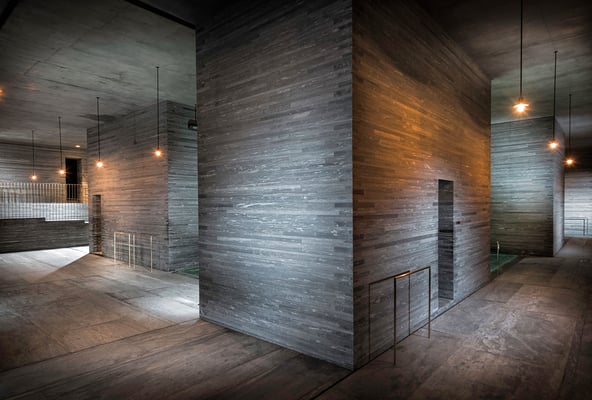 La station thermale se compose du fabuleux bâtiment des thermes en quartzite local, de l’hôtel cinq étoiles « 7132 Hotel » dans le bâtiment principal, et de la « House of Architects » quatre étoiles dans l’annexe. Le bain thermal est aménagé à la manière d’un labyrinthe de grottes rectangulaires avec divers bassins de températures différentes. Une fois immergés, les baigneurs découvrent un monde mystérieux de pierre, d’eau et de lumière brillamment mis en scène. Les visiteurs ne résidant pas à l’hôtel sont accueillis seulement sur rendez-vous, de 11h à 20h. Pour empêcher la ruée des années précédentes, seuls six visiteurs sont autorisés par quart d’heure, et le prix d’entrée – 80 francs (enfants 52 francs) – est si élevé qu’il éloigne les foules.