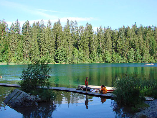 L’endroit paraît tout droit sorti d’un conte de fées : les deux lacs de montagne bleu turquoise dans la forêt de Flims sont d’une clarté exceptionnelle et offrent des conditions parfaites pour une baignade en pleine nature. La température de l’eau peut atteindre 24 degrés en été. Le lac de Cauma, un peu plus grand, est accessible en une demi-heure de marche depuis Flims Waldhaus (vous pouvez prendre un raccourci en utilisant l’ascenseur Caumasee). Le lac de Cresta se trouve à dix minutes à pied de la gare routière de Trin-Felsbach. Chacun des lacs est doté d’un petit bar-restaurant, idéal pour les familles. De plus, de juin à septembre, le lac de Cresta est surveillé par un maître-nageur.