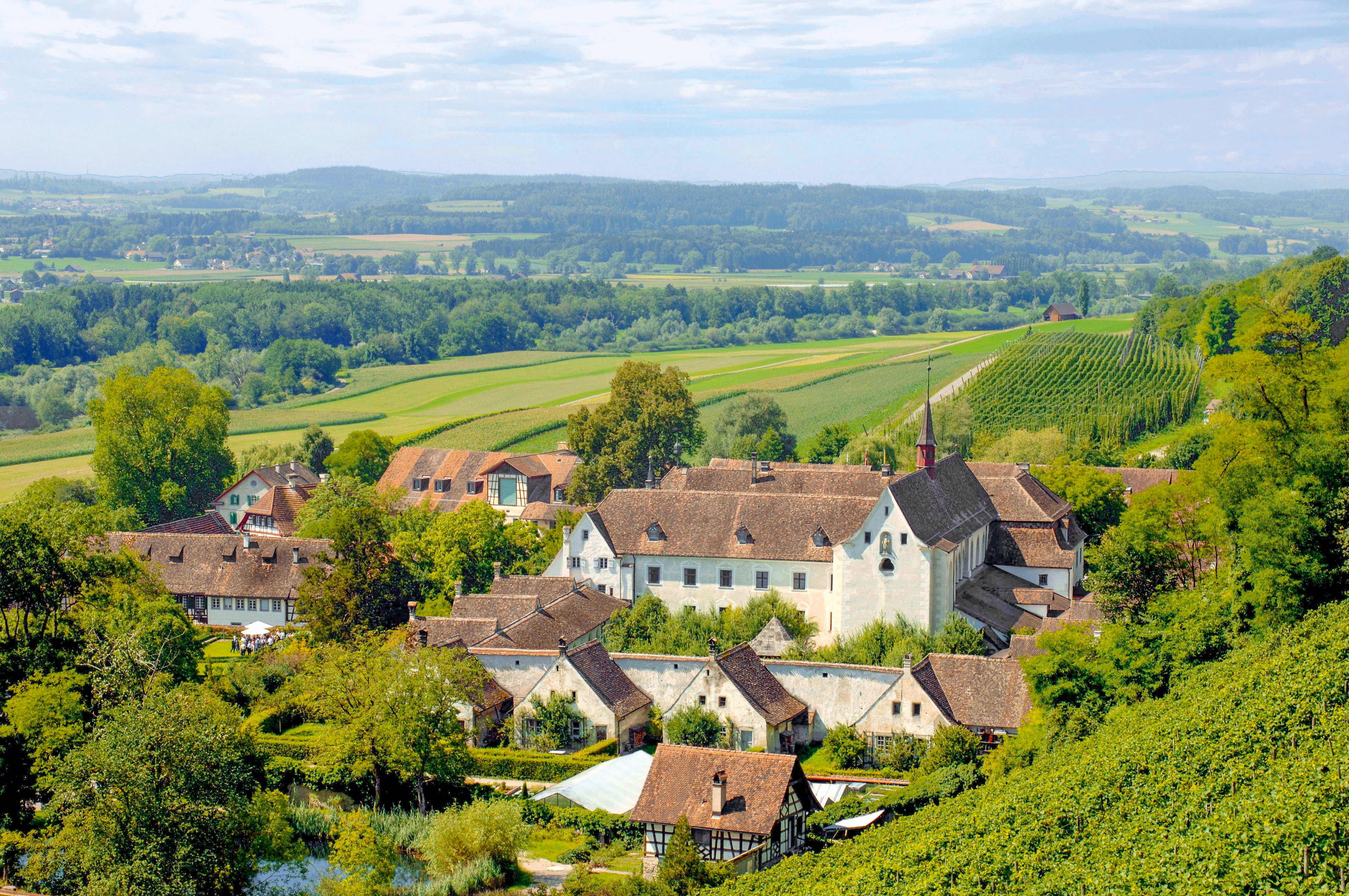 Chiunque entri nel cortile dell’ex monastero rimane impressionato. Ittingen è come un villaggio. I suoi abitanti portano avanti i valori monastici di ospitalità, educazione e incontro in una forma contemporanea. Qui si lavora tutti insieme: l’agricoltura, il ristorante, l’hotel con il centro di seminari, l’associazione sociale e due musei. I cuochi non hanno quasi bisogno di andare al mercato: la carne viene dalla loro fattoria, il pesce dal loro allevamento, le verdure e la frutta dai giardini del monastero. Il pane è cotto nel forno a legna, le viti e il luppolo sono coltivati in loco.