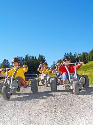 Un giro sul triciclo di montagna, noto anche come «monster scooter», sembra un incrocio tra un go-kart e uno slittino. Offre un divertimento di guida sicuro grazie al suo ampio passo e ai freni a disco idraulici. Il percorso veloce di quattro chilometri conduce lungo sentieri di ghiaia e strade alpine dalla stazione di montagna di Ämpächli alla stazione a valle delle funivie sportive di Elm. Questo divertente mezzo di trasporto è adatto anche ai giovani a partire da circa dodici anni. Un giro in calesse con salita in funivia costa 23 franchi, per i giovani 10 franchi.