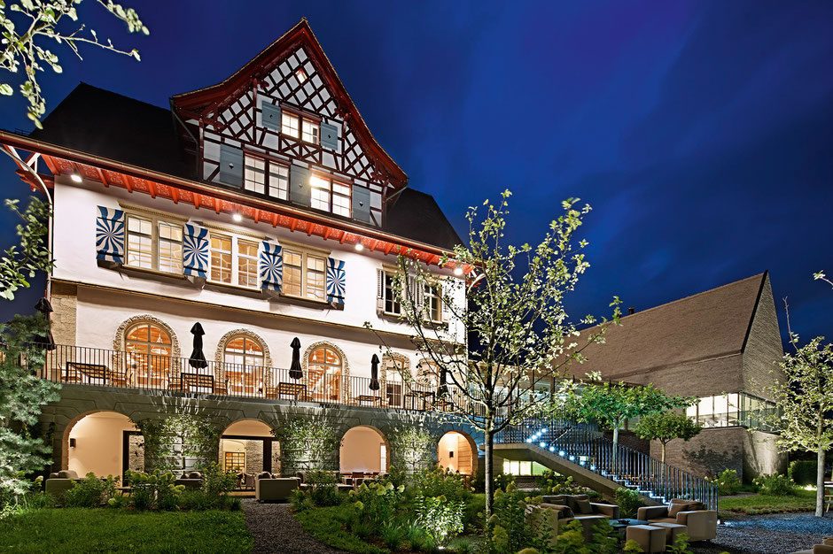 Aus dem einst betulichen Landgasthof wurde ein cooles, aber nie kühl wirkendes Gourmethotel, in dem man staunend lernen kann, was gutes Design ausmacht. Architektin Tilla Theus hat den herrschaftlichen Riegelbau unlängst feinsinnig saniert und um einen schlicht-schönen Nebenbau erweitert. Alt und Neu stehen in einem spannungsvollen Wechselspiel. Das Herz des Hauses ist die Küche, wo August Minikus die Geschmackssinne anspruchsvollster Gern-Esser verzaubert. Sechs moderne Gästezimmer und die schöne Aussicht auf den Bodensee laden ebenso zum Bleiben ein wie die nette Servicecrew, die mit Herz und Seele um das Wohl der Gäste besorgt ist.