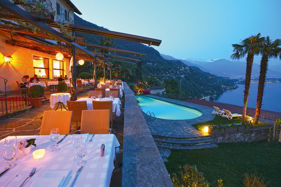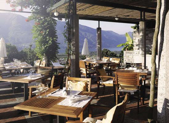 Wem es unten am See zu heiss oder zu rummelig wird, findet in diesem unlängst sanierten Boutiquehotel erfrischende Abkühlung, ausgezeichnete mediterrane Küche und ein Panorama über den Lago Maggiore, das jedes Auge trunken macht. Vögel zwitschern, eine leichte Brise fächelt, und von der Terrasse her ertönt fröhliches Gelächter und Gläserklirren. Da liegt man dann und liest und döst so vor sich hin, zwischendurch lässt man sich ein Schokoladeneis servieren oder man zieht ein paar Bahnen im Pool, und schon nach kurzer Zeit merkt man, dass man sich selbst genügt. Und das ist wohl das Grösste, was ein Hotel leisten kann.