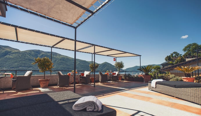 Dieses unprätentiöse Tessiner Dreisternehotel an sonniger Hanglage inmitten subtropischer Vegetation wird seinem Namen mehr als gerecht und verfügt über eine berauschende Aussicht auf den Lago Maggiore, über Locarno und Ascona hinweg in die Täler der Verzasca, der Maggia und ins Centovalli. Bei einem Abendessen auf der Restaurantterrasse über dem Pool wähnt man sich im tiefen Süden, und das Gastgeberpaar Katrin und Rémy Fischer kümmert sich mit grossem persönlichem Einsatz um das individuelle Wohlsein der Gäste und eine heitere Leichtigkeit des Seins.