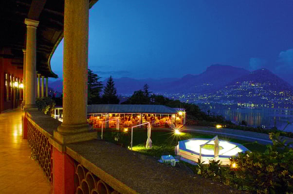Die prächtige Villa, 1868 von Prinz von Hohenzollern erbaut, bietet jene Prise Extravaganz, die sonst nicht unbedingt zum Stil helvetischer Nobelabsteigen gehört. Spätere Bauherren griffen in die Requisitenkiste verschiedenster Stilrichtungen und kreierten ein architektonisch bizarres Gebilde: Ein bisschen englisches Landgut, ein wenig toskanischer Palazzo, ein Schuss französisches Liebesnest, gerahmt von einer atemberaubend schön gelegenen Restaurant- und Barterrasse mit Blick auf die Bucht von Lugano und die tropisch anmutenden Berge. Ein einzigartiges, unvergleichliches Erlebnis, wenn man das Glück hat, es sich leisten zu können.