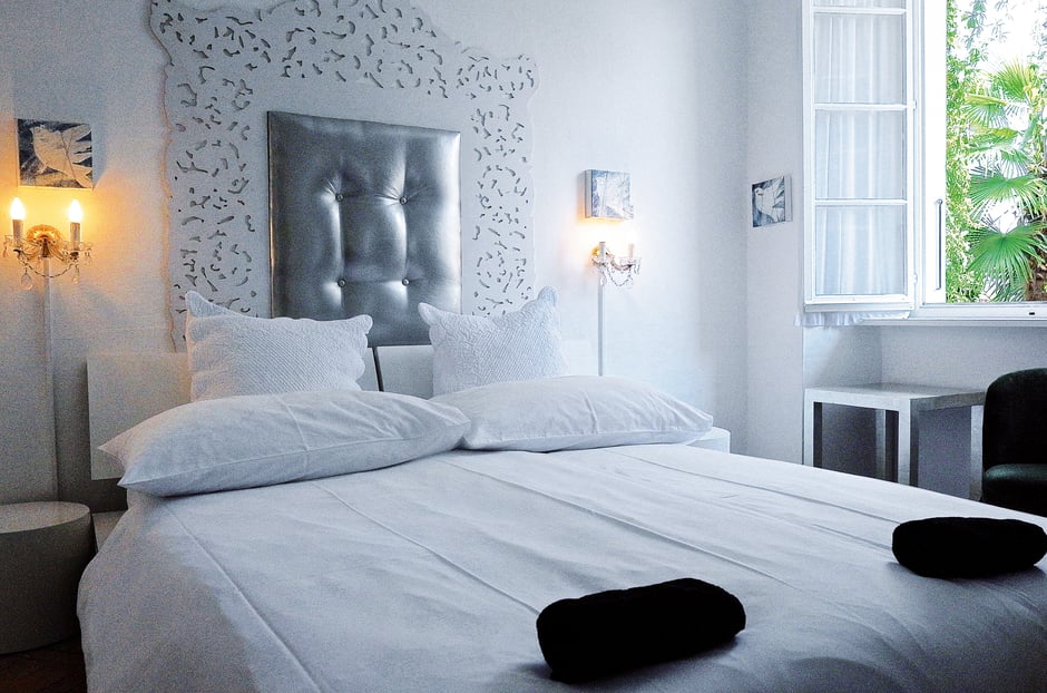 Che bellissimo! Das charmante B&B mit sieben sehr unterschiedlich eingerichteten Gästezimmern ist ein versteckter Schlupfwinkel nahe der Piazza Grande und ein kleines Gesamtkunstwerk mit angegliederter Kunstgalerie, Kleider- und Blumenboutique sowie der schönsten Innenhofterrasse der Stadt. Das Gebäude stammt aus dem 15. Jahrhundert, das Lebensgefühl ist ganz von heute. Auch das Frühstück, das stets mit einem Lächeln und Gang für Gang am Tisch serviert wird, verzaubert und trägt dazu bei, dass man unbedingt wieder zurückkommen will. Möglichst bald.