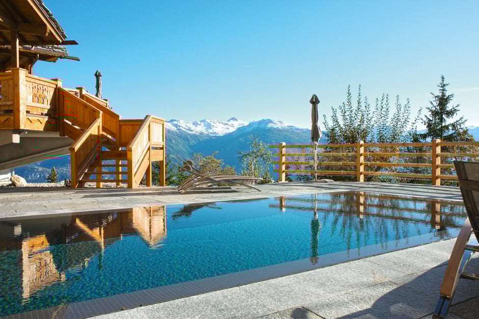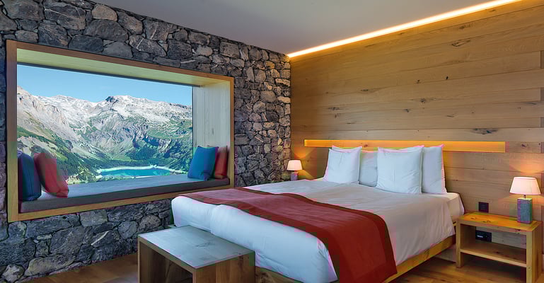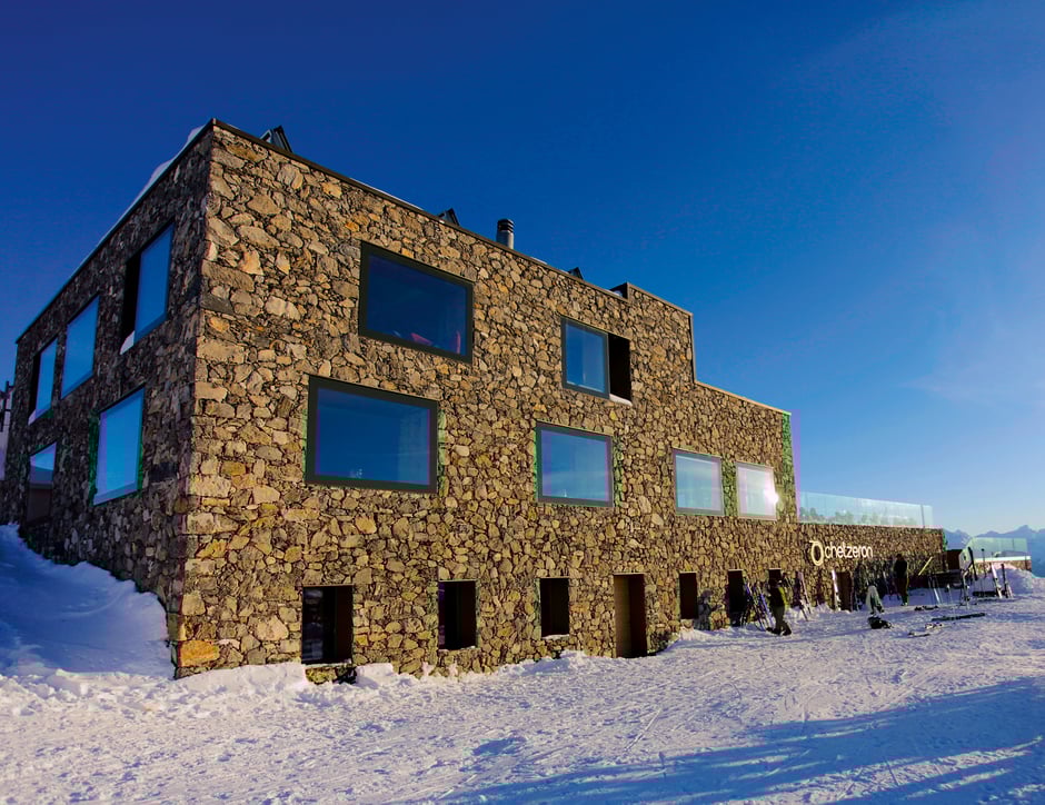 Das „Chetzeron“ zählt zu den attraktivsten Neuankömmlingen in der alpinen Hotelszene in den letzten Jahren. Es bietet puristisches Design und zugleich eine Aura alpiner Behaglichkeit. Den Betreibern liegt viel an der lokalen Identität und der Naturverbundenheit ihres 16-Zimmer-Hauses. Das spiegelt sich in den Bau- und Einrichtungsmaterialien ebenso wie in den Produkten, die in der Küche verarbeitet werden. Im Mittelpunkt steht jedoch die atemberaubende Aussichtslage auf 2112 Metern Höhe mitten im Skigebiet von Crans-Montana.