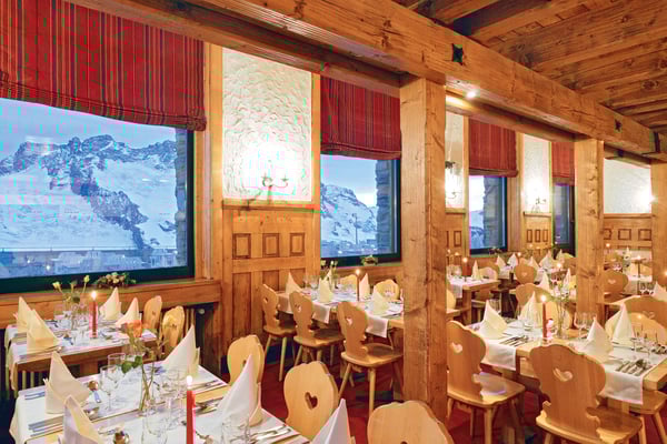 Das höchstgelegene Hotel der Schweiz hat den Bahnanschluss vor der Tür: Bergstation Gornergrat, 3089 Meter über Meer. Die beiden aluminiumsilbernen Kuppeln auf dem Dach des trutzigen, Mitte der Nullerjahre totalsanierten Gebäudes beherbergen Sternwarten einer hochalpinen Forschungsstation. Die Zimmer sind schlicht modern eingerichtet und jeweils nach einem der umliegenden Viertausender benannt. Die Nummern – etwa 4357, 4436 oder 4634 – entsprechen der Höhe des namensgebenden Bergs, den man aus dem Zimmerfenster sieht. Dass Übernachtungen nur mit Halbpension angeboten werden, ist logisch. Wo sollte man sich abends sonst verpflegen?