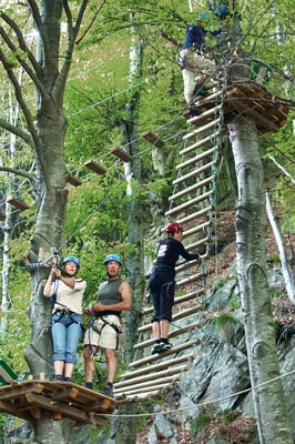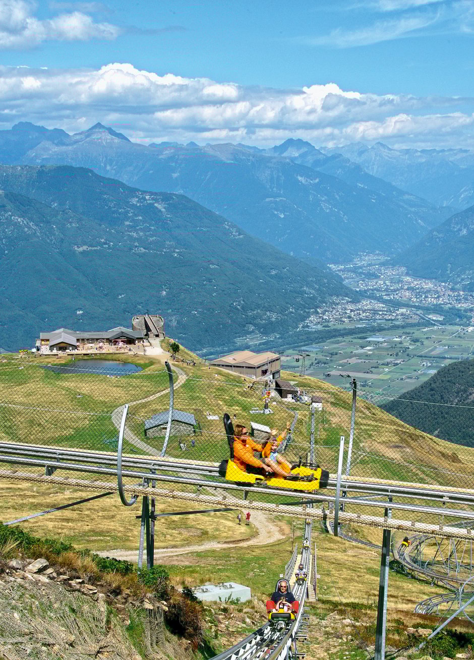 Mit der Gondelbahn schwebt man bequem von Rivera am Monte Ceneri auf die Alpe Foppa (1530 m ü. M.) am Fusse des Monte Tamaro. Hier beeindrucken zunächst der weite Ausblick und die moderne Kirche Santa Maria degli Angeli des Architekten Mario Botta. Und hier ist der Ausgangspunkt für attraktive Panoramawanderungen im Herzen des Tessins. Für aktive Familien lockt hier oben aber auch ein Erlebnispark mit vielerlei Attraktionen: von der Sommerrodelbahn mit 360-Grad- Kurven über den Hochseilpark (mit zwei speziellen Parcours für Kinder ab vier und sieben Jahren) und der Tyrolienne-Drahtseilrutsche bis zur Gleitschirmschule und der Mountainbike Downhill- und Freeride-Strecke.