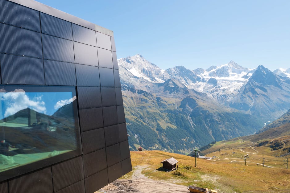 Hartgesottene Wintersportler mögen Grimentz-Zinal belächeln, doch die 115 Pistenkilometer zwischen 1500 und 2900 Metern Höhe überzeugen mit abwechslungsreichen Strecken in beeindruckend archaischer Bergwelt. Die beschwerliche Anfahrt ins Val d’Anniviers – über ein enges, steiles Strässchen ab Sierre – schreckt manche Tagesbesucher ab, sorgt aber für ein exklusiveres Erlebnis: Hier hat jeder Skifahrer mehr Platz als in den grossen Wintersportgebieten. Auch im 2023 eröffneten Bergrestaurant Espace Weisshorn auf 2700 Metern – auf dem Dach der gleichnamigen Gondel-Bergstation – herrscht kein Gedränge. Stattdessen lädt das puristisch gestaltete Lokal zum entspannten Schlemmen ein – auch im Sommer. Unter der Leitung von Didier de Courten, dem einst gefeierten Gourmetkoch aus Sierre, begeistert die Küche mit moderner, kreativer und dennoch erschwinglicher Alpenküche – ein Konzept, das aufgeht. Nachhaltigkeit wird hier ebenfalls grossgeschrieben: 380 Quadratmeter Sonnenkollektoren decken 90% des Energiebedarfs, und auf Flaschen wird, mit Ausnahme des Weins, komplett verzichtet.