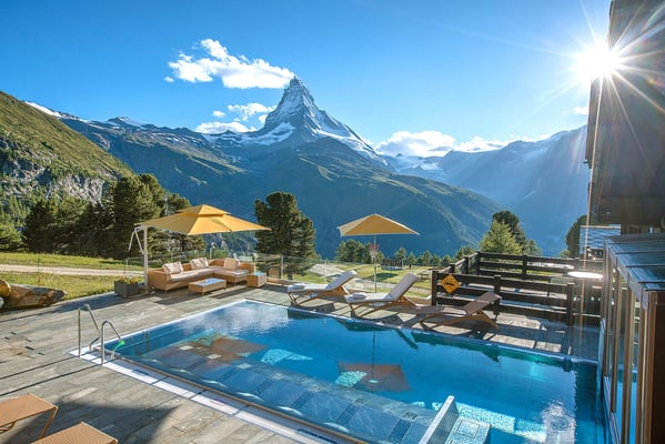 Den Ausblick dieser einzig wirklichen Luxus-Lodge in der Schweiz kennt man schon, ohne je dagewesen zu sein – aus Dutzenden von Kalender- und Werbefotos mit der idealen Perspektive aufs Matterhorn. Landschaftlich eindrücklicher geht es in den Bergen kaum, zudem liegt das Riffelalp Resort inmitten des Skigebiets respektive direkt an den Wanderwegen. Doch besteht der Lodge-Zauber nicht nur im authentischen Alpenerlebnis an dieser atemberaubenden Lage auf 2222 Metern über dem Meer, sondern auch im mondänen Lebensgefühl mit Gästen aus nah und fern. Diese schätzen die entspannte Atmosphäre ohne vornehmes Getue, das kleine Spa mit wohlig warmem Aussenpool und die gemütlichen Zimmer im Chalet-Look. Hier kann man sich diskret vom Rest der Menschheit verstecken und im Einklang mit der Natur fühlen, unberührt vom Chaos in der Welt. Selbst Zermatt (das in zwanzig Fahrminuten mit der Gornergratbahn erreichbar ist) scheint himmelweit entfernt.